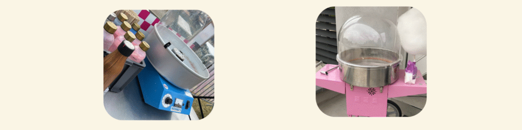 Option machine seule : machine à barbe à papa pour 20 personnes, consommables inclus. Idéal pour les anniversaires, fêtes, mariages ou événements d’entreprise.