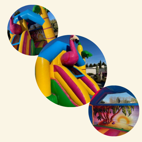 Le château combo flamingo est un jeu gonflable compact et attrayant.