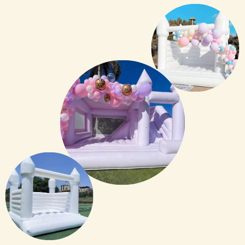 Le château gonflable blanc, ultra tendance pour les mariages, anniversaires ou baby showers, apporte une touche élégante et fun à tous vos événements !