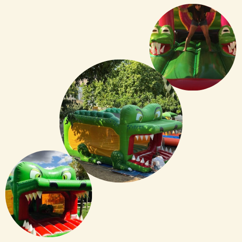 Gonflable ludique et coloré où les enfants peuvent grimper sur les crocodiles et s’amuser en toute sécurité. Aventure et rires garantis !